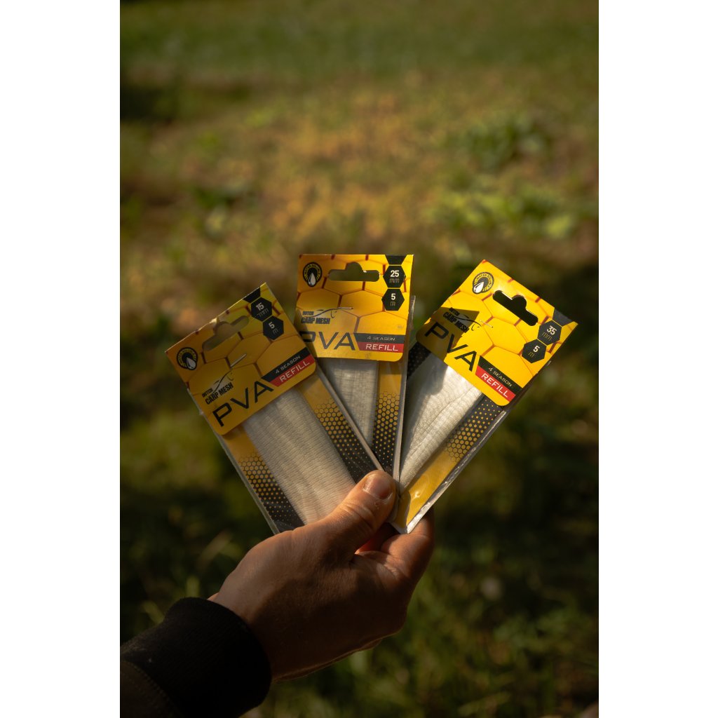 Dutch Carp Mesh je prémiová značka PVA produktů vyrobených v Holandsku. Vyniká precizním zpracováním, rychlou rozpustností a vysokou pevností punčoch i šňůrek. Každý produkt je testován přímo u vody, aby splňoval nejvyšší nároky kaprařů.