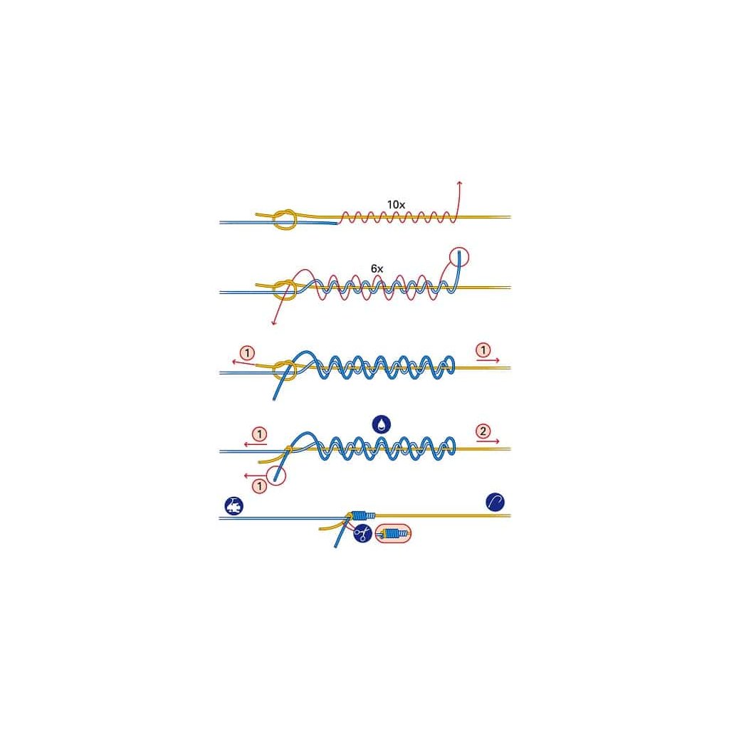 Pro spojování doporučujeme vhodné uzly dle typu hlavního vlasce (např. spoj na šňůru/na monofil). Pro nejlepší funkci navíjej leader minimálně 2×, ideálně 3× délku prutu na cívku.