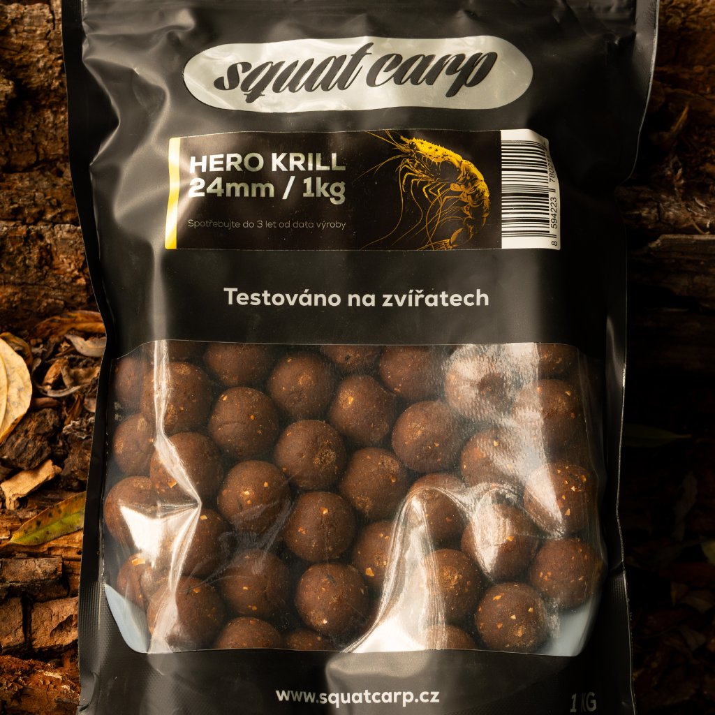 SQUAT CARP - Boilies HERO KRILL 1kg Prémiové boilies / 1 kg balení