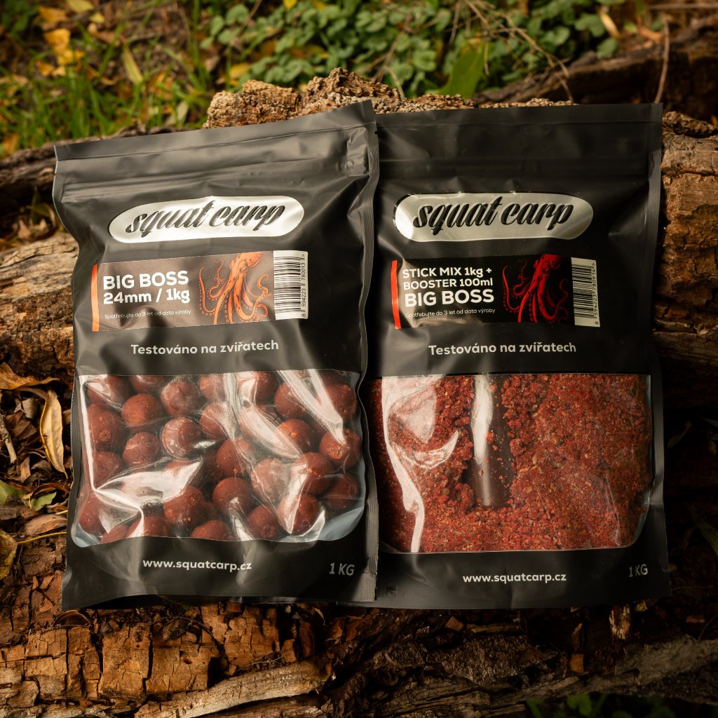SQUAT CARP - Set Big Boss ( Boilies + Stick Mix ) Kompletní řešení pro silný pachový signál a dlouhodobou atraktivitu na dně