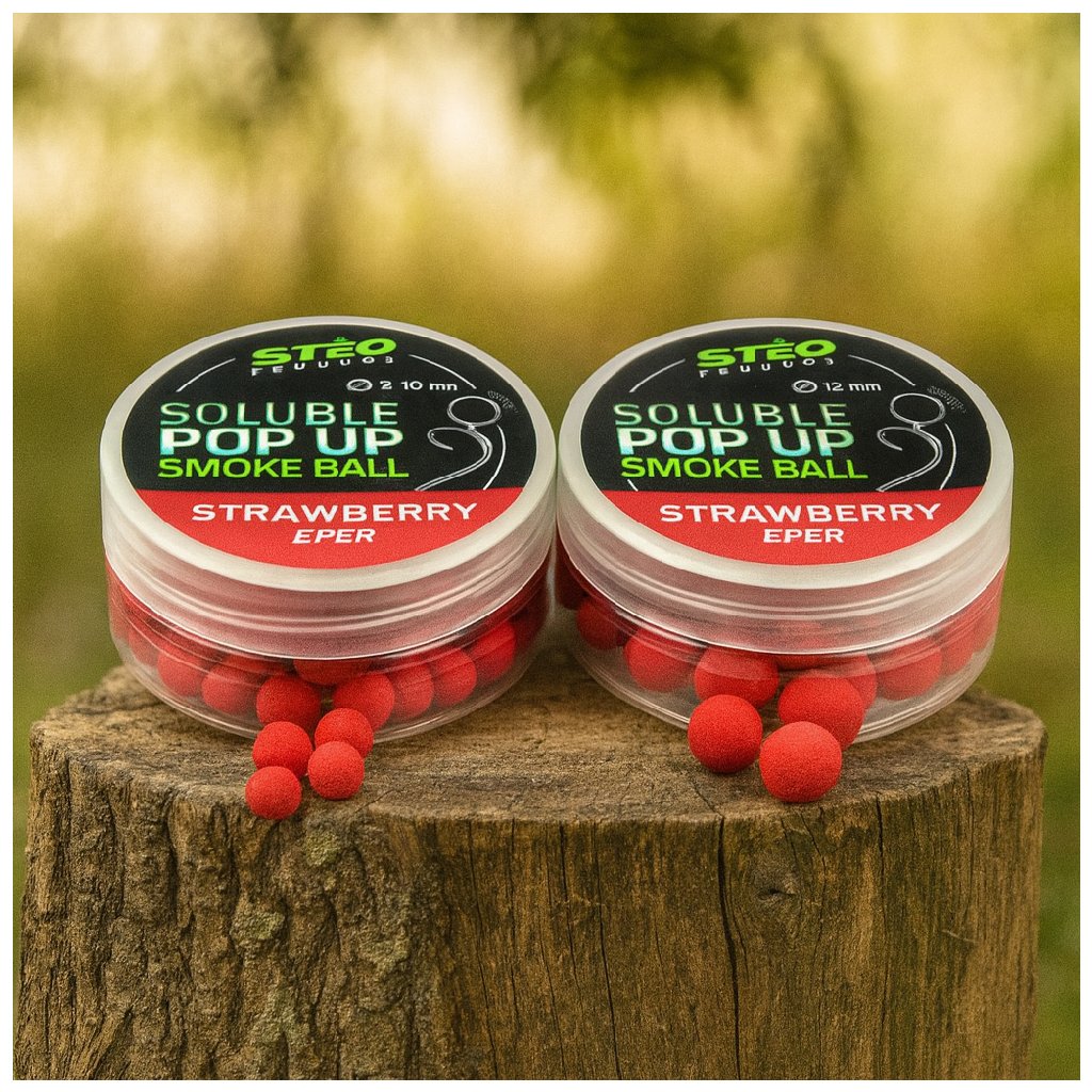 Rozpustné pop up boilies Strawberry 12 mm patří mezi nejúspěšnější sladké nástrahy pro lov kaprů i amurů. Sladká intenzivní jahodová vůně se začíná uvolňovat okamžitě po dopadu do vody a vytváří atraktivní aromatický oblak.