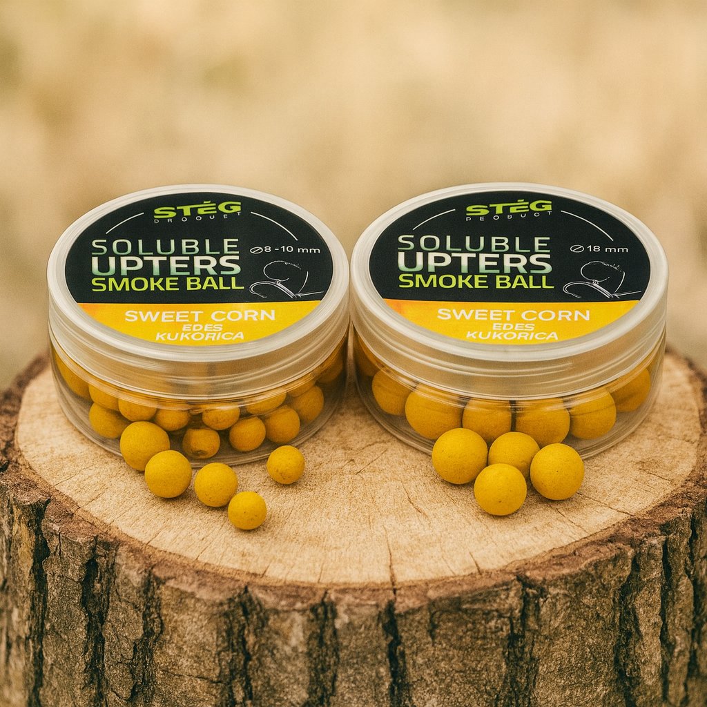 p> Stég Products Soluble Upters Smoke Ball 12mm – Sweet Corn jsou vysoce atraktivní rozpustné nástrahy určené pro rybáře, kteří vyžadují okamžitý vizuální i aromatický signál. Po dopadu na dno začnou uvolňovat jemný kouřový efekt, který vytváří kolem nástrahy výraznou stopu a zvyšuje zájem ryb v širokém okolí.