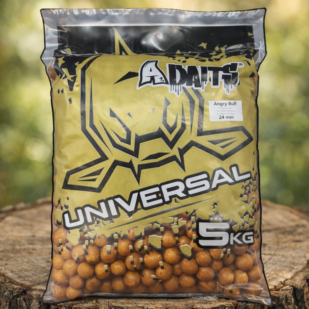 Boilies Universal Angry Bull spojuje ověřený základ řady Universal s přídavkem výrazných masových a pálivých složek. Základem směsi je 50 % objemová směs Niger a 50 % sušených proteinových složek doplněných o čerstvá vejce. Tato kombinace zajišťuje vysokou nutriční hodnotu a snadnou stravitelnost pro kapry v každé roční době.