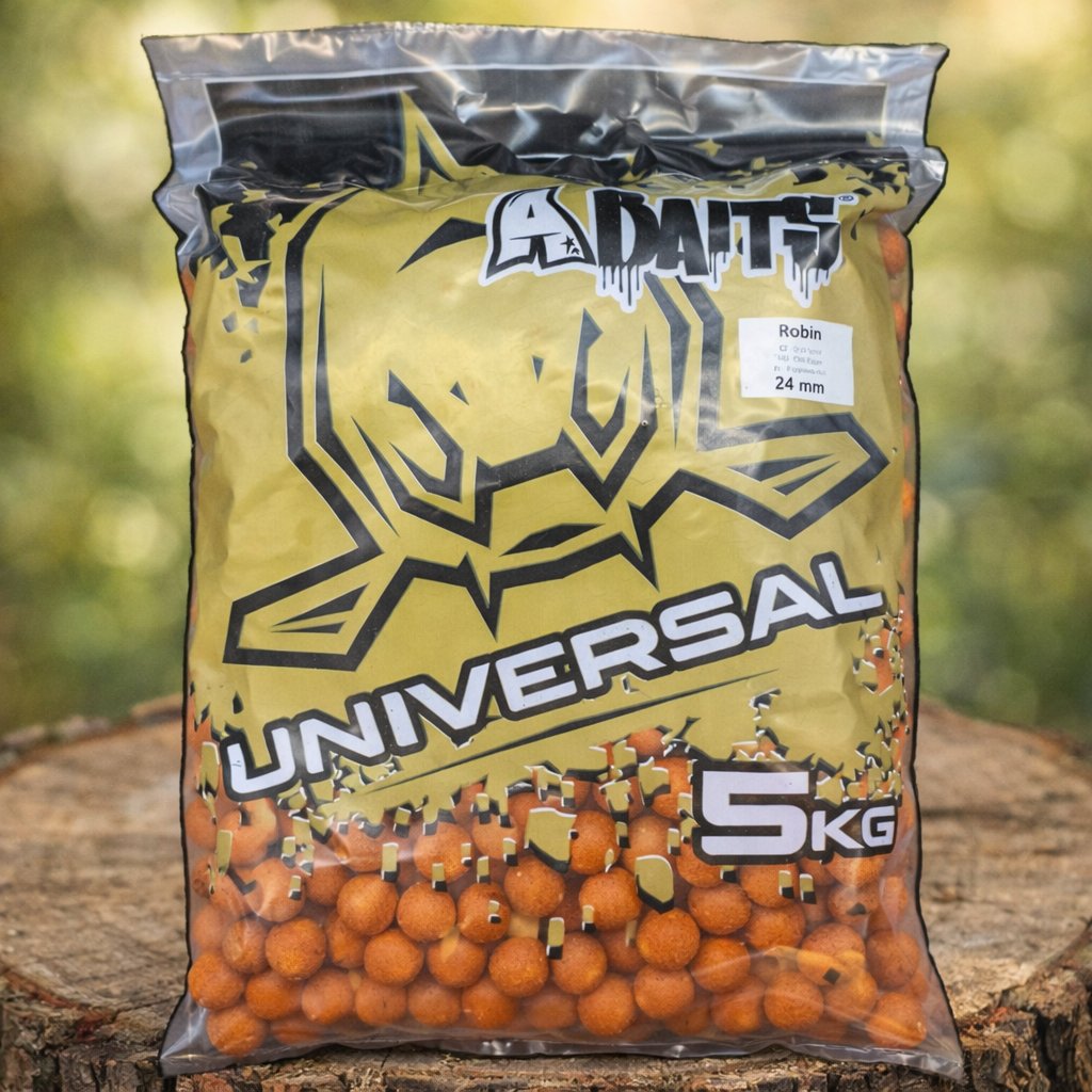Boilies Universal Robin vychází z osvědčeného základu řady Universal, která kombinuje 50 % objemové směsi s přídavkem Nigeru a 50 % sušené proteinové báze doplněné o čerstvá vejce. Tato směs zaručuje vysokou nutriční hodnotu, snadnou stravitelnost a dlouhou aktivitu ryb i v chladné vodě.