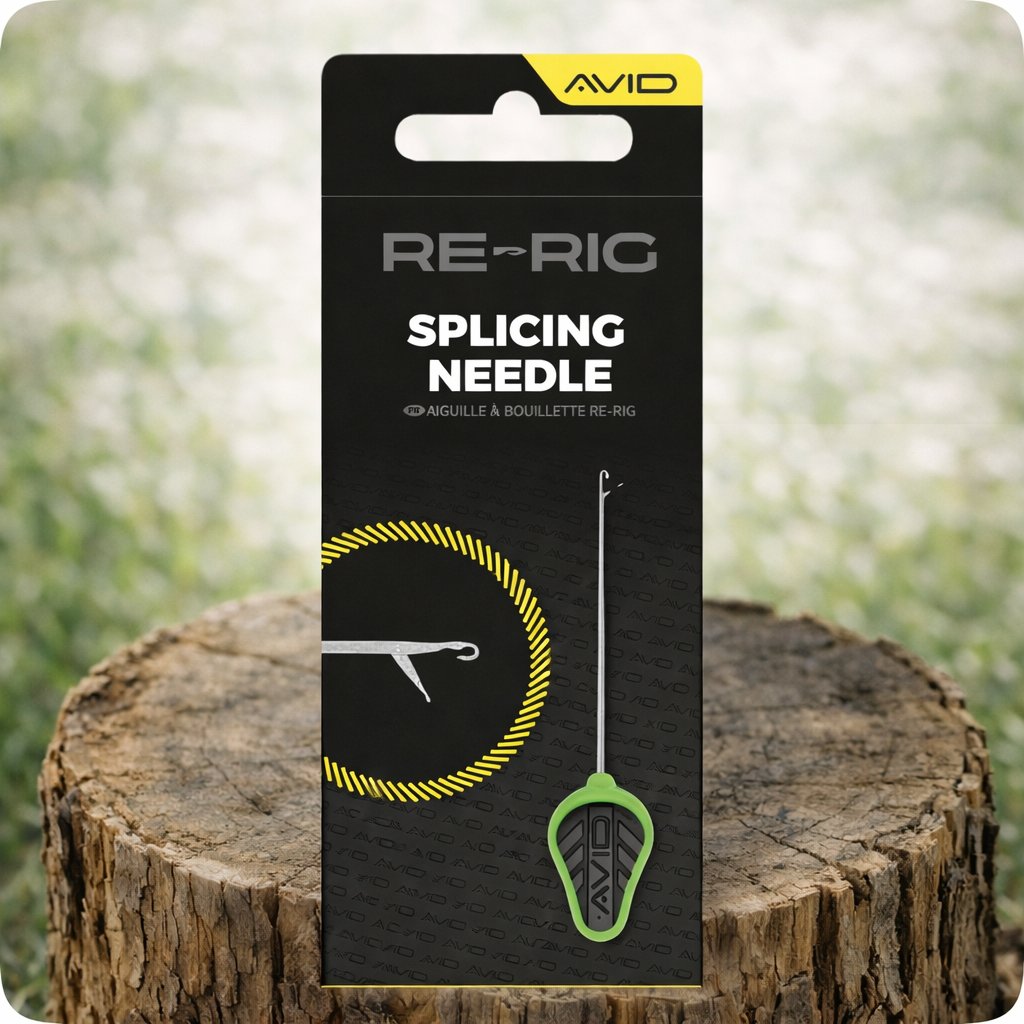 Avid Carp Re-Rig Splicing Needle je jemná jehla se západkou, určená pro snadné a přesné vytváření oček na olověných i bezolověných šňůrách 🔧