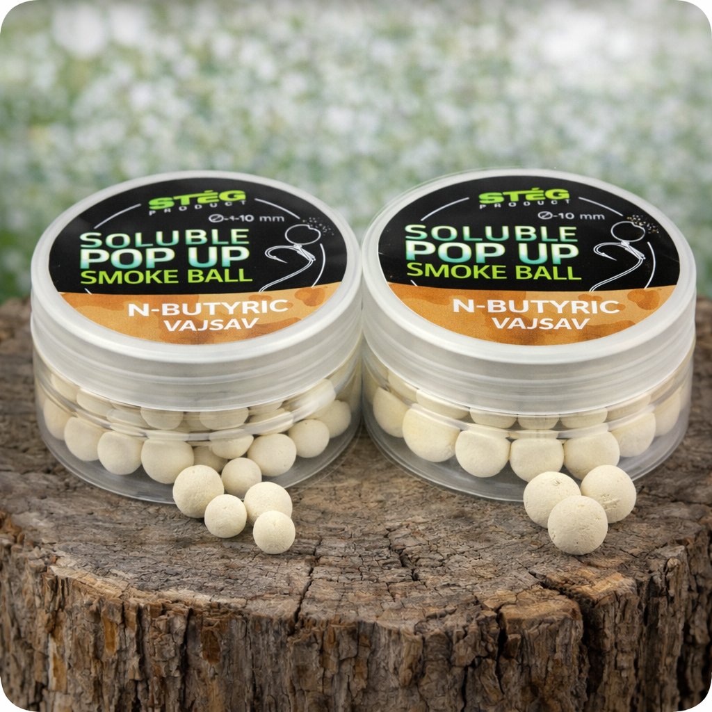 Rozpustné pop up boilies Stég Butyric Acid 8–10 mm, 20 g patří mezi nejagresivnější nástrahy na trhu. Kyselina máselná (N-Butyric) vytváří ve vodě silný pachový signál, který dokáže přilákat kapry, amury i opatrné ryby z velké vzdálenosti – a funguje celoročně, včetně zimy.