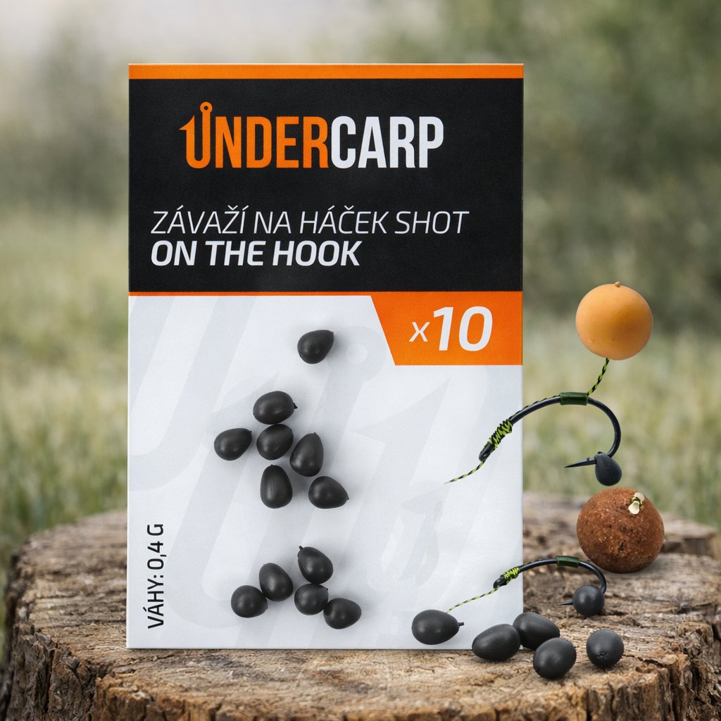 Under Carp Shot On The Hook 0,4 g je precizní wolframové závaží určené přímo na ramínko háčku. Jeho hlavním úkolem je okamžité otočení háčku do správné pozice při nasátí nástrahy, čímž výrazně zvyšuje úspěšnost záseku 🎯.